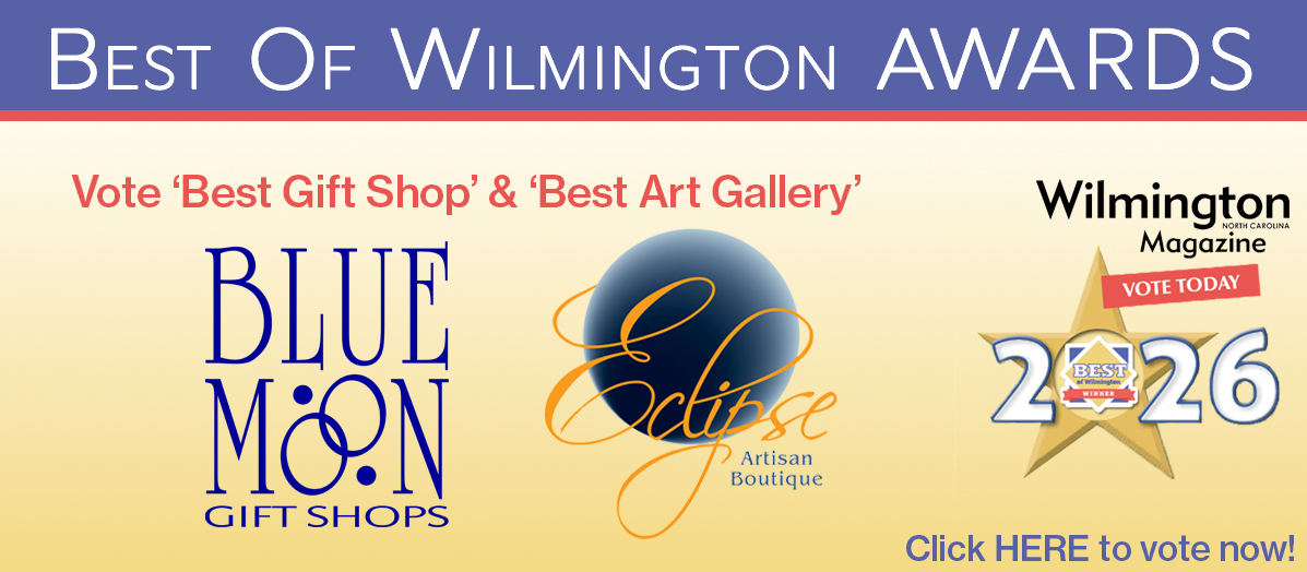 When the owners of Blue Moon Gift Shops decided it was time to build yet another layer to a multifaceted shopping venue, Eclipse was launched in November of 2013. A vision of one of a kind, eclectic pieces and work produced from local and regional artisans helped create an artisan boutique. From the front counter to the floors, Eclipse captures the element of surprise with made to order pieces from their many talented artists. Collections include original paintings, custom furniture, sculpture, pottery, glass, jewelry, photography and textiles. Voted the Best Art Gallery 2014 by Encore Magazine readers, Best Art Gallery 2022 for the ninth year in a row by Wilmington Magazine readers, and the 2018 Made in Wilmington Winner in the Supporter category by Wilmington Business Journal. The wonderful support we receive, our great customers and the never-ending array of artisans and goods keeps Eclipse a favorite in Wilmington!